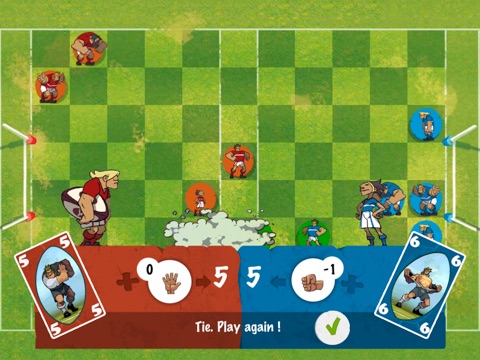 Très bon jeu mais cest vraiment dommage que la partie sarrête au premier essai, on devrai pourvoir choisir un nombre de tour ou une durée pour le match car souvent contre lIA les parties sont régler en 3 ou 4 minute maximum. Et un mode tournoi ou championnat serai le pied. Très bon jeu quand même le principe est super mais on sen lasse vite...