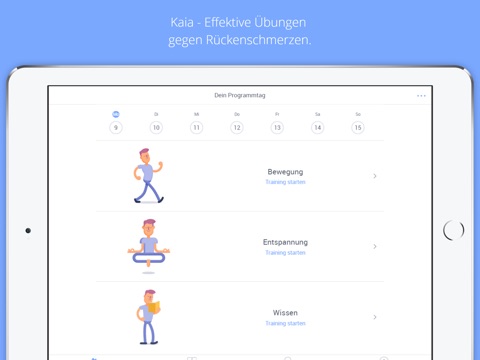 • EDUCATION: Kaia includes regular insights and learnings to teach users more about back and joint health, chronic pain, wellness, etc.