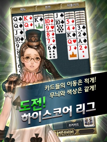 - 카드들의 이동은 적게! 무늬와 색상은 같게! ▶도전! 하이스코어 리그◀