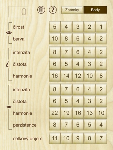 Pokud chcete hodnotit další víno, můžete vymazat přidělené body tlačítkem s odpadkovým košem nebo zatřepáním telefonem či tabletem.