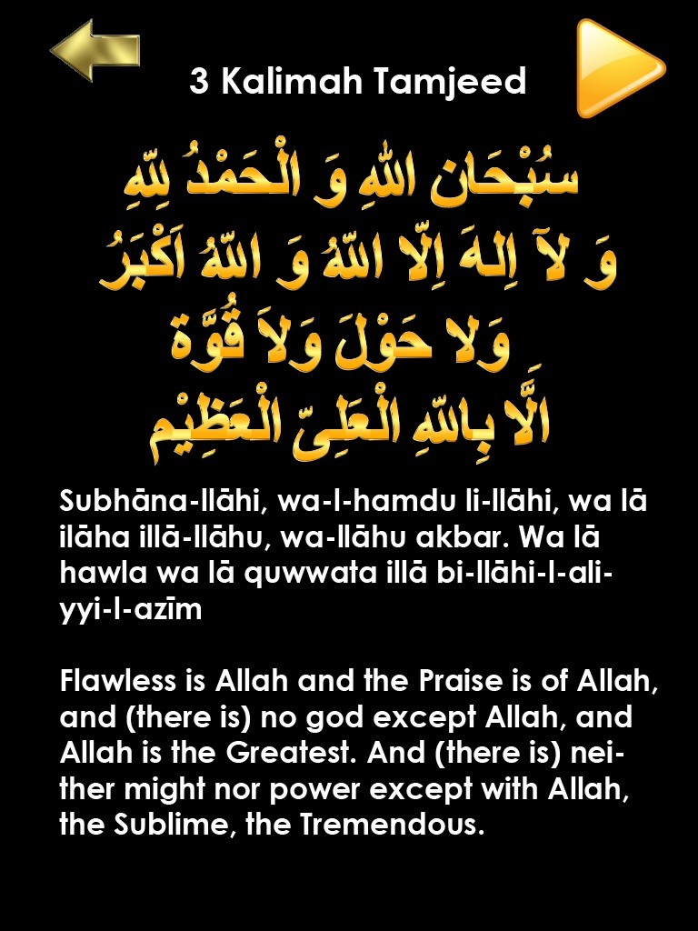 Read, listen and memorize 6 Kalmas in Islam. The app contacting Arabic text in beautifully designed golden font. English translation and transliteration is available for all six Kalmas. Easily play and stop the recitation with one tap.