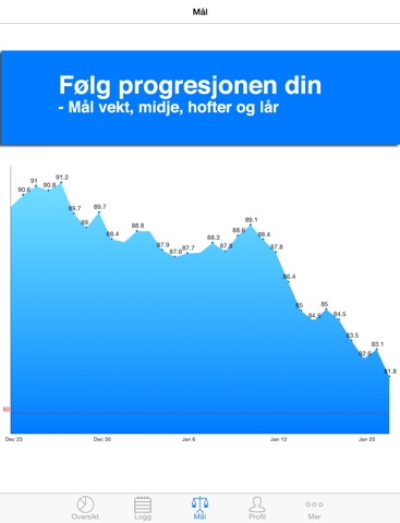 • Du kan spore endringer i vekt, midjemål, hoftemål m.m. og se fremgangen din ved hjelp av flotte grafer.