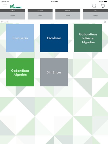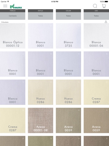 Use Kaltex’s app to browse Kaltex´s vast piece-dye fabrics & colors catalog. It covers the basic five fabric family. Find the fabric you are looking by filtering results by fabric name, composition, desired usage, or color.