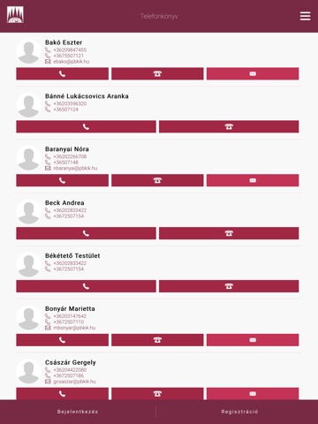A beépített telefonkönyv segítségével közvetlenül elérheti munkatársainkat e-mailben vagy telefonon.