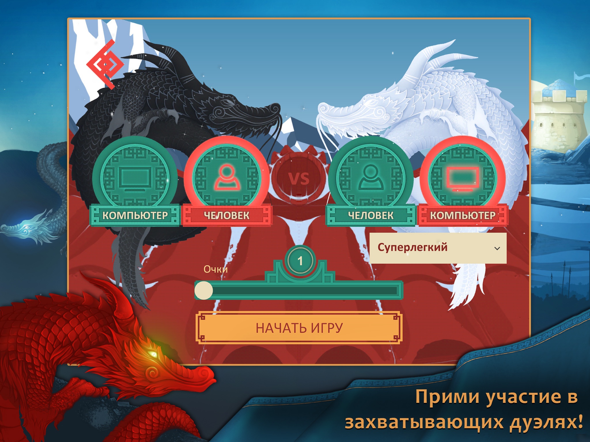 Tolles Spiel. Es gibt eine Möglichkeit in verschiedenen Schwierigkeitsstufen gegen die KI zu spielen und eine online Variante für ein Spiel gegen echte Gegner. Super langer Spielspaß!