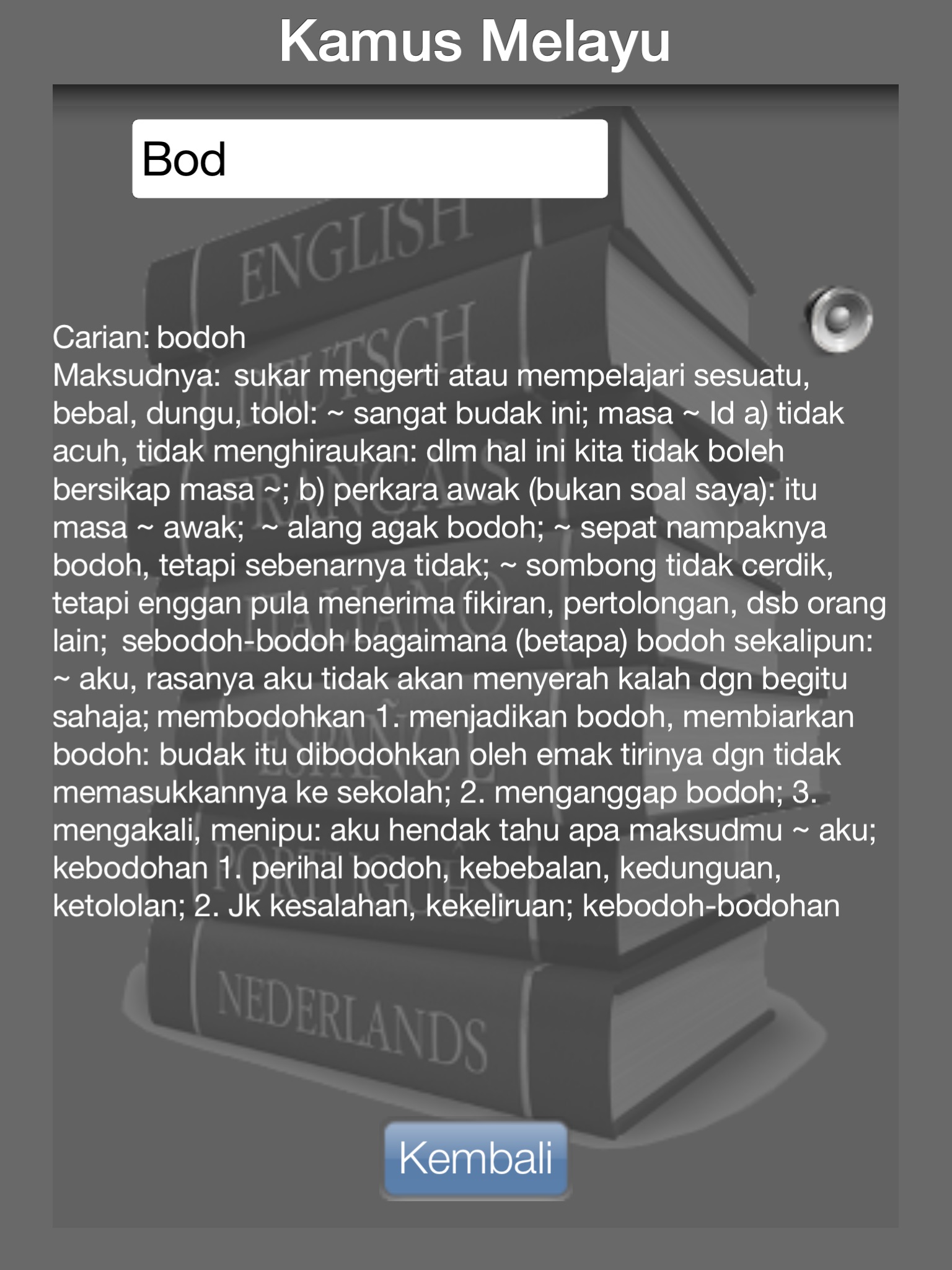 Kamus Melayu adalah kamus percuma dan mudah untuk digunakan bagi semua peringkat umur.