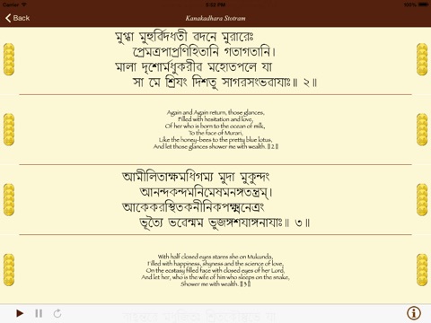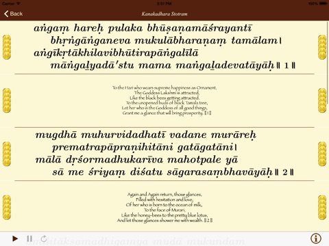 Adi Sankara was one of the great saints of his time (8th century). He was born in a Brahmin family in Kerala. After brahmopadesa, as is usual during those times, he was asked to beg alms for his lunch. One day when he went to a Brahmin house, the lady of the house was so poor that she did not have anything to give him. She searched hard and found one small fruit of gooseberry, which she gave to Sankara the boy. He was so touched by her gesture that he sang these 21 mellifluous hymns on Goddess Lakshmi, who poured golden goose berries as rain to the poor woman’s house. And it is believed that poverty would be banished by singing this hymn.
