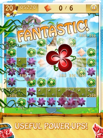 Swipe and connect the colorful flowers, to make chains and match them. Longer chains give bonus points and power-ups. Clear the dry sand and the rocks, or collect the buried gems! Include the swiped flowers to reach the level goal!