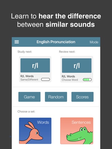 - Multiple study modes (practice individual sounds, practice all, test, game)