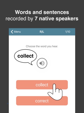 Pronunciation Pro contains over 1000 recordings to help you hear the difference between similar sounds, such as R/L and S/TH.