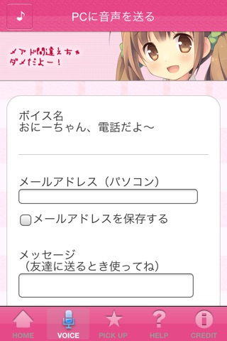 Send a voice e-mail that you like to check the sound coming from the voice list!