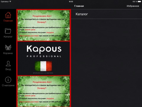 Несуразно смотрится зелёный баннер при вхоже в приложение. Зачем делать его таким наляпистым и дешевым. Фон должен быть однотонным, шрифт читаемым , а у вас завихрушки какие-то детские. В некоторых описаниях продукции есть жутко синий вырви глаз цвет, который абсолютно нечитаем. В общем, все хорошо с продукцией, она действительно похожа на профессиональную , но Приложение- нет.