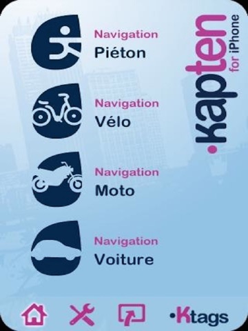 Une application pratique, rapide et intuitive pour tous ceux qui aiment alterner leurs modes de transports en toute simplicité. Voiture, piéton, vélo, scooter, moto…Le GPS multitransport Kapten for iPhone adapte automatiquement votre itinéraire et ses instructions de guidage à votre mode de déplacement. Quelque soit votre mode de transport Kapten vous amène à bon port.
