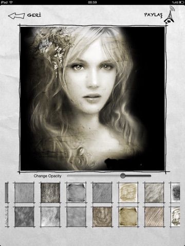 Fotoğraflarınıza Kara kalem, Sephia gibi efektler verip, kaydetip maille paylaşabilirsiniz.