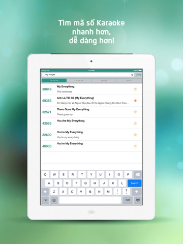 - Tìm kiếm nhanh bài hát theo tên không dấu hoặc các ký tự đầu tiên trong tên bài hát giúp dễ dàng tìm kiếm, tiết kiệm thời gian