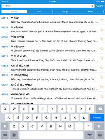 + Tìm kiếm theo tên bài, tên lời, tác giả, mã số bài hát.