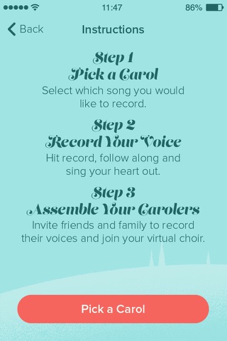 Once all parts have been recorded, spread the cheer! Send your carol to friends and family. Carols can be viewed with a unique URL on any desktop machine or mobile device.