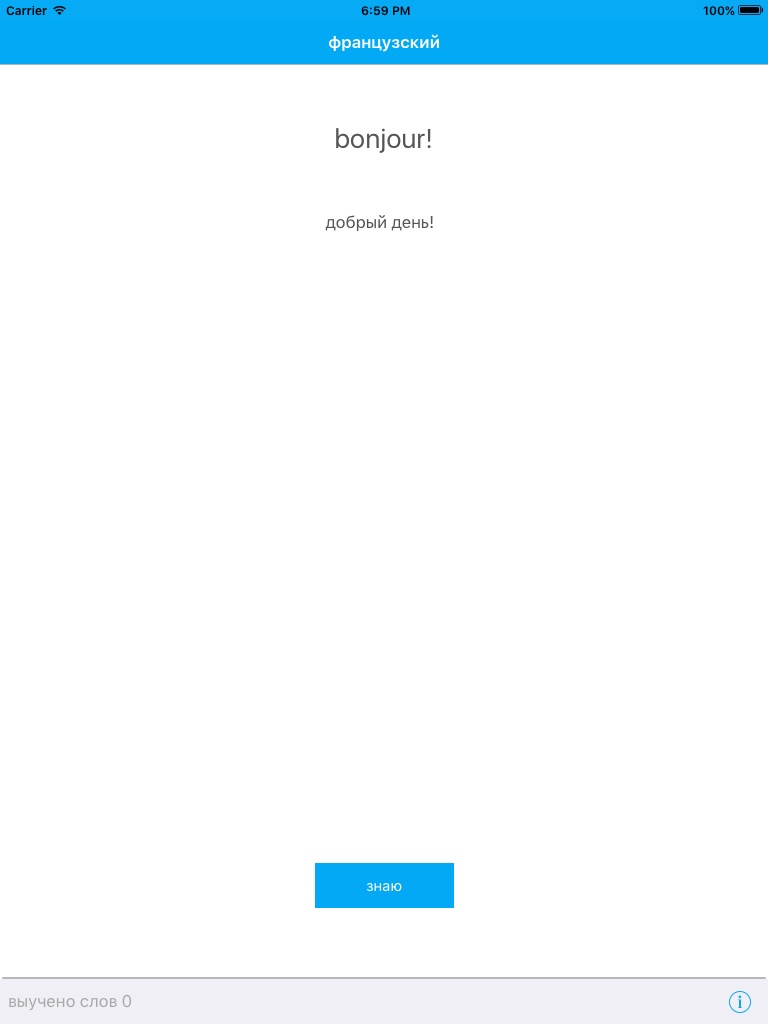 И если вы сможете правильно перевести его на французский, нажмите кнопку "Знаю", и это слово больше не появится.
