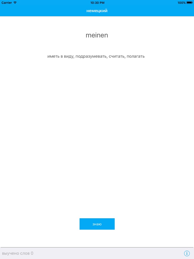 И если вы сможете правильно перевести его на немецкий, нажмите кнопку "Знаю", и это слово больше не появится.