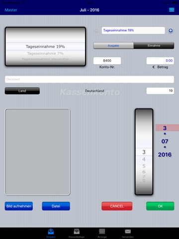 Die Kassenbuch App bietet Ihnen die Möglichkeit, Ihre Belege zu archivieren. Dabei wird der aktuelle Bestand ständig berechnet und gibt Ihnen Informationen über den Finanzhaushalt Ihrer Geschäftskasse. (per Monat und Gesamt)