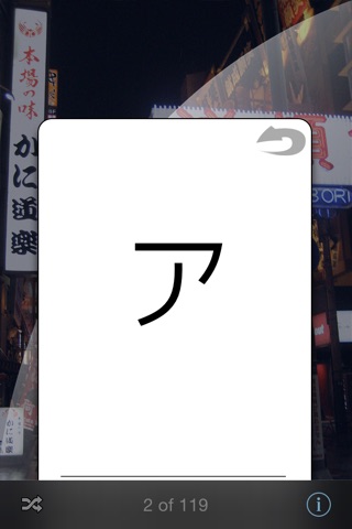 A study aid with an intuitive flash card interface, Katakana lets you focus on learning the Japanese Katakana characters without distractions.