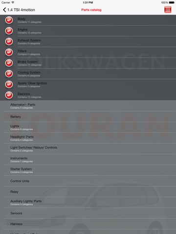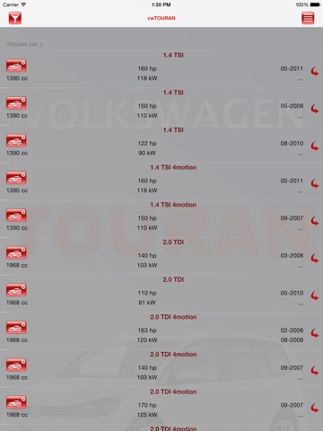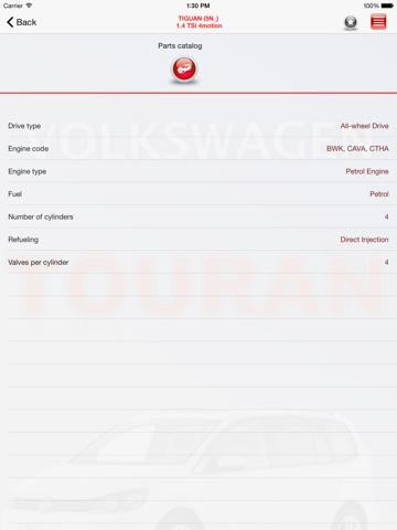 The result of the filter - list of cars. On the page displaying the vehicle characteristics (tree parts, type of fuel, type of catalyst, refueling, engine code, the number of valves on the camera, the number of cylinders, engine type, drive type, brake system.)