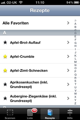 Übersichtlich: Alphabetisches Verzeichnis aller Rezepte mit Favoriten-Funktion - so habt ihr eure Lieblingsrezepte immer dabei.