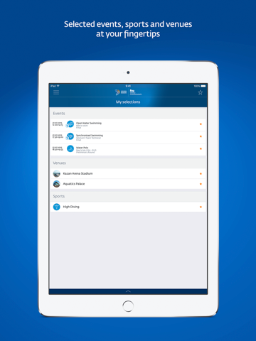 Kazan2015 is the official mobile application for the 16th FINA World Championships 2015. The app will provide fans with up-to-the-minute information in the lead-up to and throughout the Championships. The application is available in the Russian and English languages.