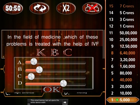 4) Audience poll - Graph of answers given by audience will appear on your screen.Sometimes answer may be wrong.But mostly audience poll is right.
