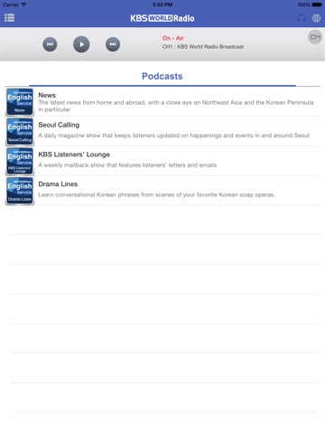 - On-air streaming, VOD, Podcasts for KBS WORLD’s content