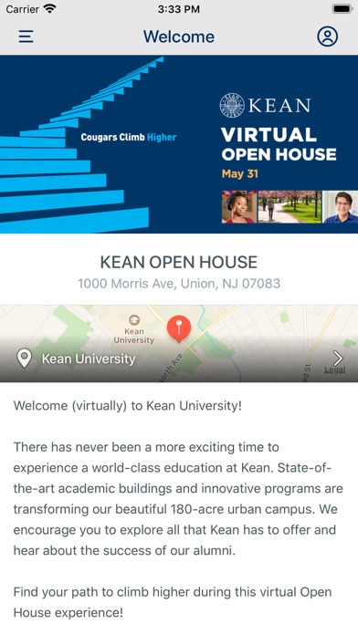 Kean University open house app provides guide to all prospective students and parents to open house activities.