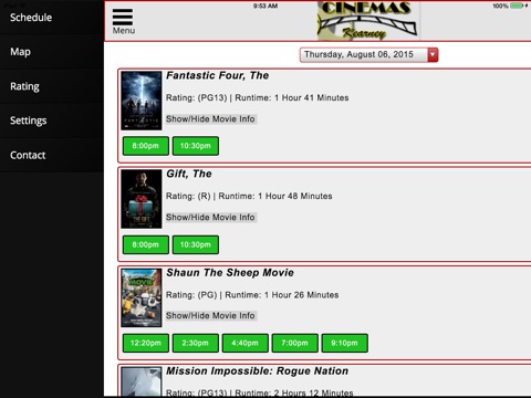 Have access to movie showtimes, descriptions and buy tickets at Kearney Cinema 8.