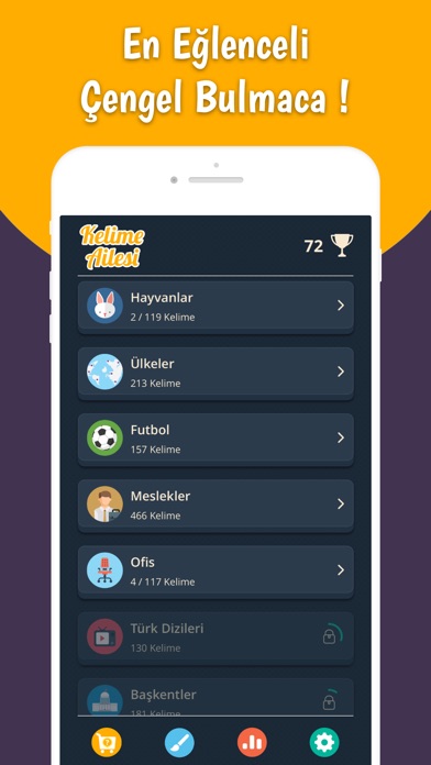 -Her bir kategori için giderek artan üç farklı zorluk seviyesinde sınırlarını zorlayabilirsin.