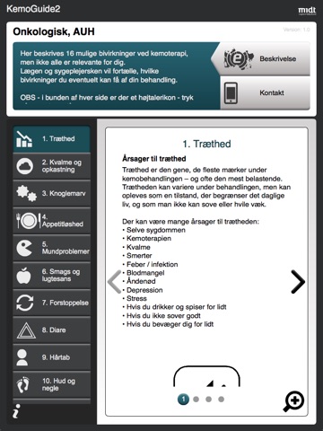 Her beskrives 16 mulige bivirkninger ved kemoterapi, men ikke alle er relevante for dig. Lægen og sygeplejersken vil fortælle, hvilke bivirkninger du eventuelt kan få af din behandling. OBS - i bunden af hver side er der et højtalerikon - tryk på dette for at få teksten læst op.