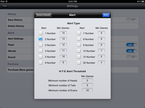 Its to let you know when certain conditions are met but recurring events such as pairs frequency, including trips , quads etc Other than that it works great oh one other thing h or t great how about left and right... Good luck too us all in keno P.s. one more one more number... Improvement in the game..because luck is never enough smart luck,.. Brings us that much closer to winning...ty