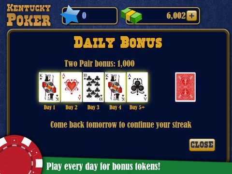 Kentucky Poker pays out for high pairs, two pairs, all the way up to a straight flush.