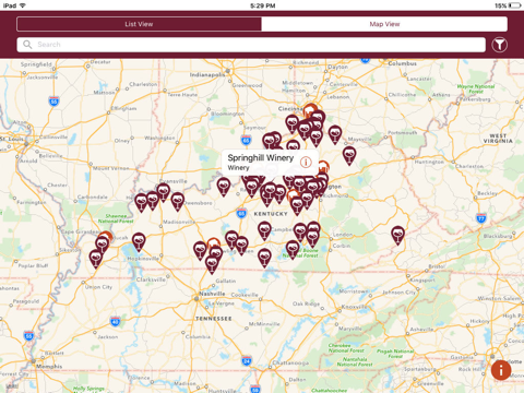 • Displays over 60 Kentucky wineries and more than 20 Kentucky breweries in map or list view. A filtering capability allows you to view the exact locations you want.