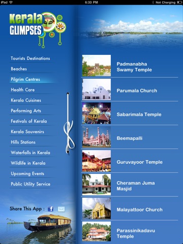 Kerala Glimpses for iPad is an iPad application to Glimpse out Kerala’s Tourist Spots. Kerala, known as “ Gods Own Country “ is a popular tourist destination famous for its backwaters, Ayurvedic treatments and tropical greenery . You can view the tourist destination, Pilgrim center, Health care, Kerala Cuisines, Performing arts, Hill stations, Waterfalls, Wildlife, Kerala souvenirs, and beaches. The main feature of the application is that the user can locate the place in a well organized manner.
