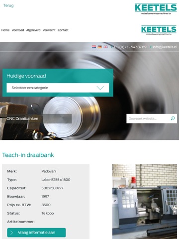 Keetels Machines BV is al 25 jaar gespecialiseerd in de in- en verkoop van gebruikte machines voor de metaalbewerking, zoals een draaibank. Zowel in Nederland als in het buitenland. Als u tweedehands draaibanken of andere overtollige machines wilt verkopen of inruilen, biedt ze dan bij ons aan. Wij doen u graag een vrijblijvend bod.
