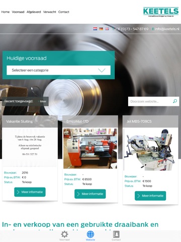 Voor zowel het kopen als verkopen van een gebruikte draaibank moet u bij Keetels Machines BV zijn. Wij hebben een divers en variërend aanbod van tweedehands draaibanken en andere machines voor het bewerken van metaal. De vier machines op deze pagina geven de recent toegevoegde machines aan. Door op "meer" te klikken krijgt u een totaal overzicht van recent toegevoegde machines te zien. U kunt ook onze huidige voorraad op categorie selecteren.