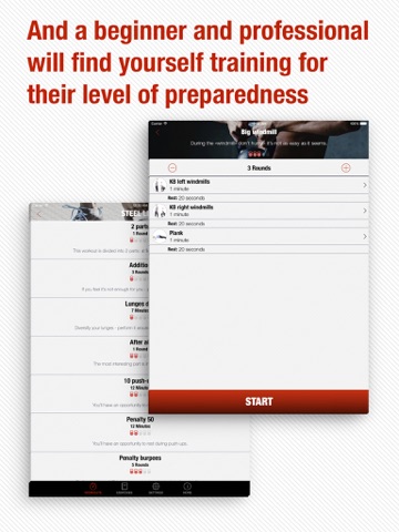 The app contains 9 workout sections and every section has 15 workouts and none is repeated.