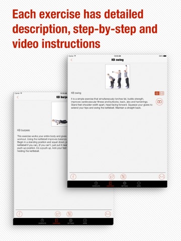 - Every exercise has detailed description, photo and video instruction;