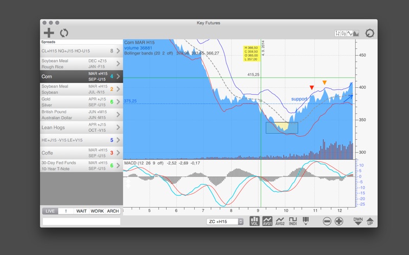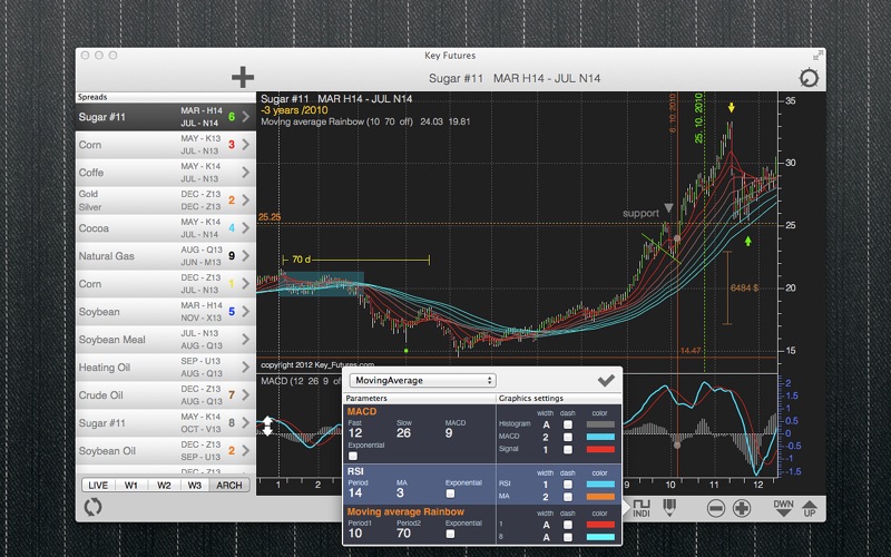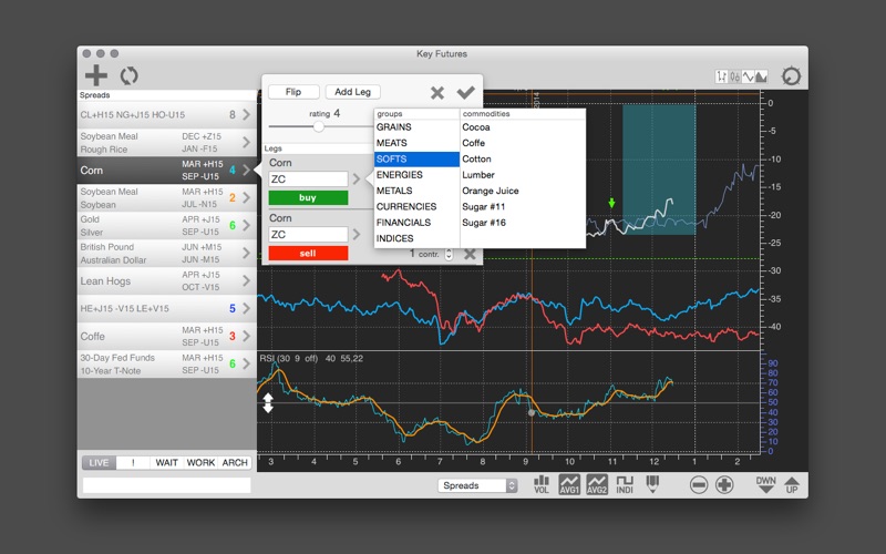 KeyFutures allows you to search and manage your futures markets and futures spreads.