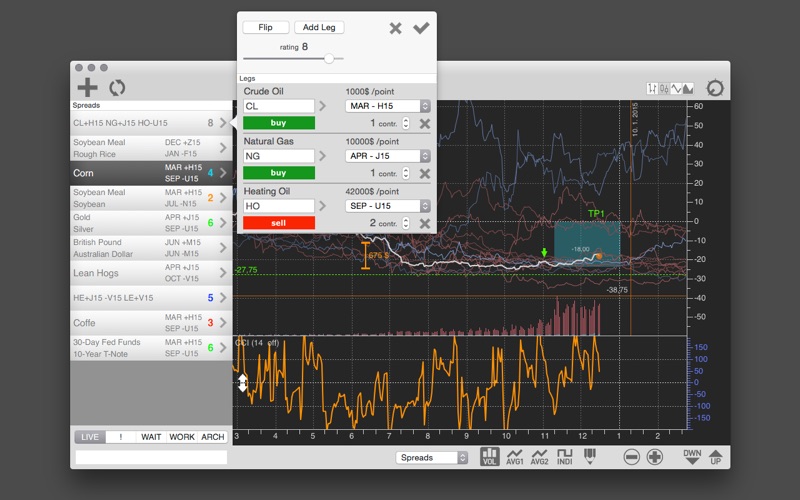 - Create your own set of spreads you want to follow or trade.
