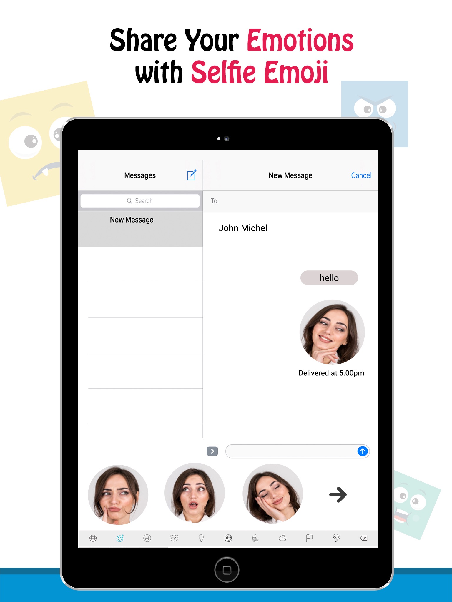 Selfie Emoji for messaging are the new way to show off what u want to say and feel beside the text messages. Now with this app it has become easy for you to turn your funny, happy or sad face into animated emoji. This app contains your all time favorite emojis in different categories from where you can choose and express your emotions correctly.
