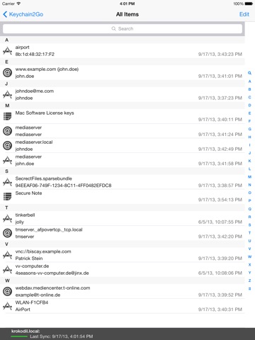 Keychain2Go lets you store your valuable passwords and notes in a secure way and sync them with other devices (Mac and iOS) running Keychain2Go.