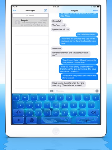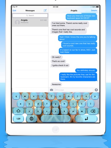 Send texts with the official H2O Just Add Water custom keyboards! With this app you can replace the standard Apple keyboard with keyboards featuring the H2O mermaids, cool sound effects & music.