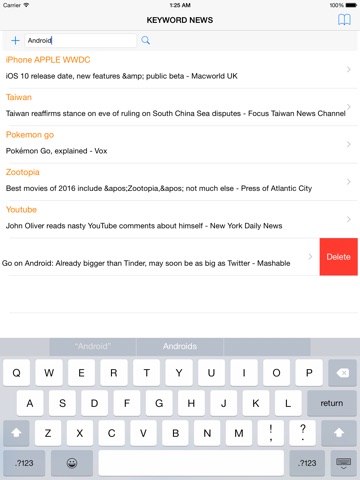 輸入感興趣的關鍵字後,搜尋列出最近的相關新聞~