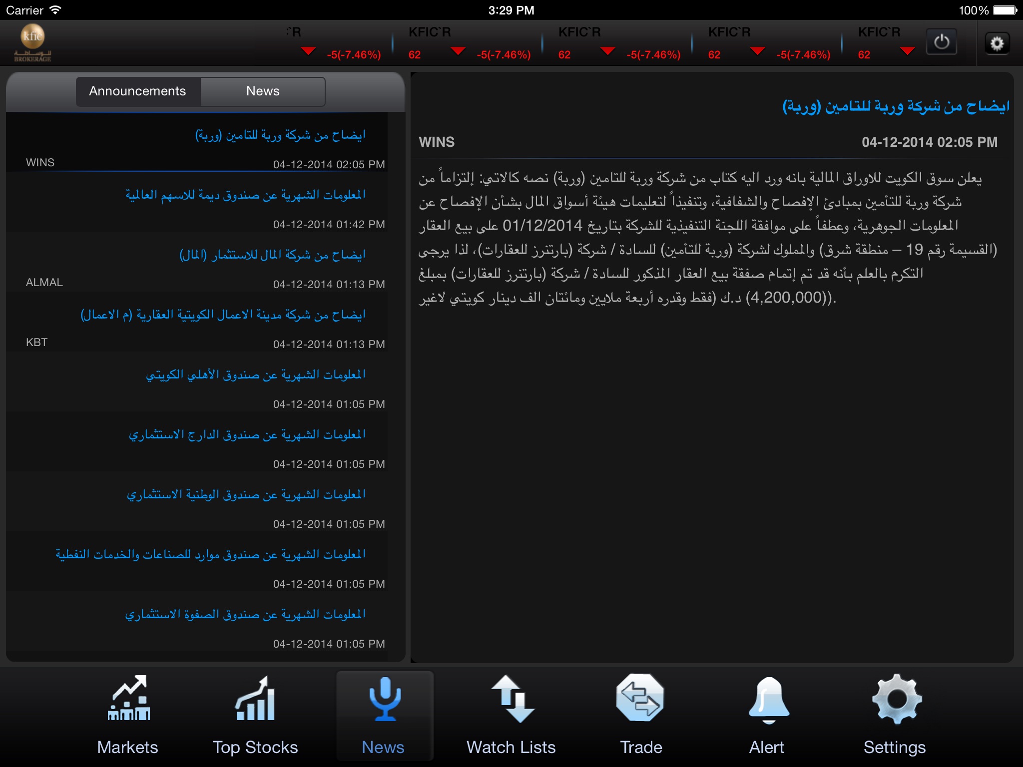 KFIC Brokerage Mobile Trader offers you direct access to the capital markets of Kuwait. Use the App to connect to your trading account and track,buy,sell on Kuwaiti markets.