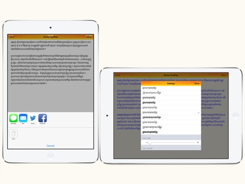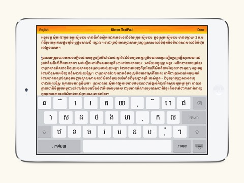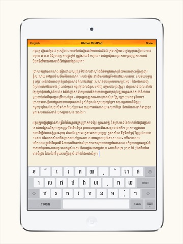 Im looking for this kind of app, Khmer text editing software for my new iPad. This one has more features than Khmer Keyboard+TextPad which is available for free and now I use both apps. At last I hope to get more features in the next software update. Excellent.